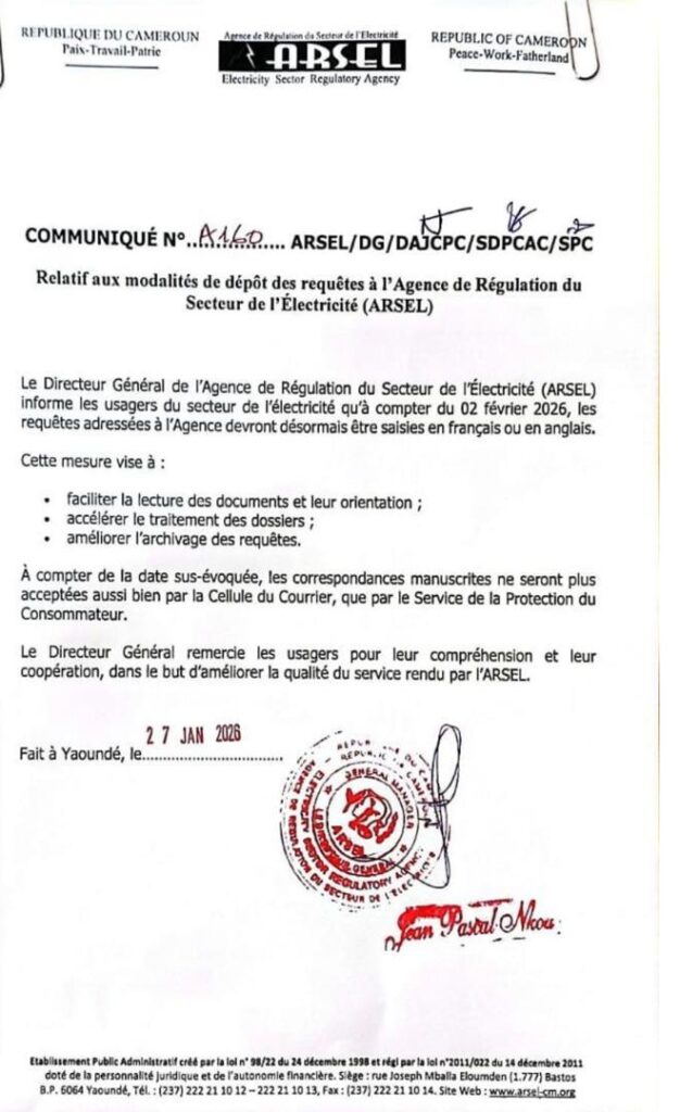⚡ NOTE JURIDIQUE – ÉLECTRICITÉ AU CAMEROUN COMPRENDRE LE RÔLE D’ARSEL, SON CADRE LÉGAL ET COMMENT SAISIR LE RÉGULATEUR